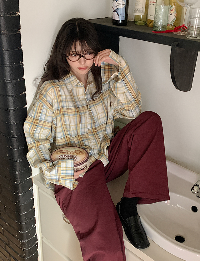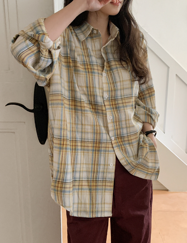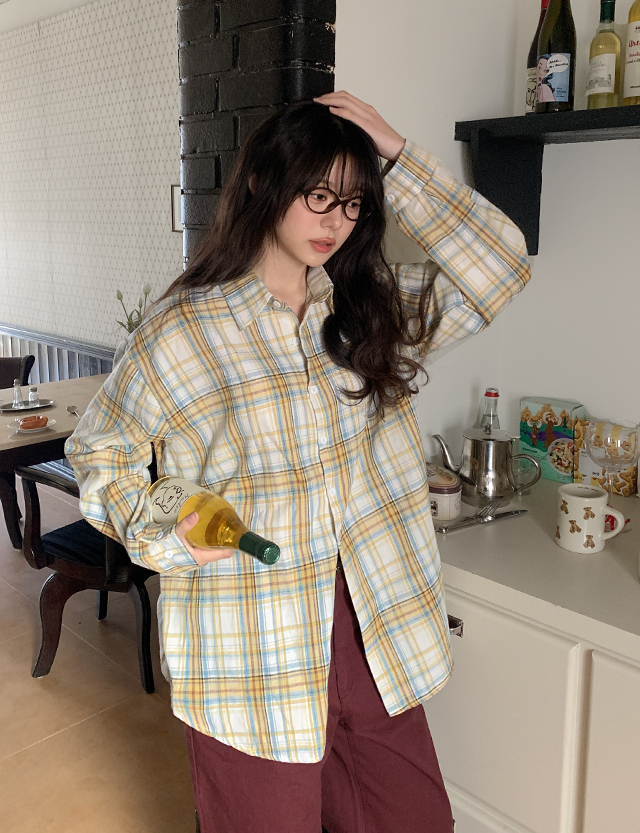 개강하면 골라입는 宽松 多色 格子 衬衫 86646