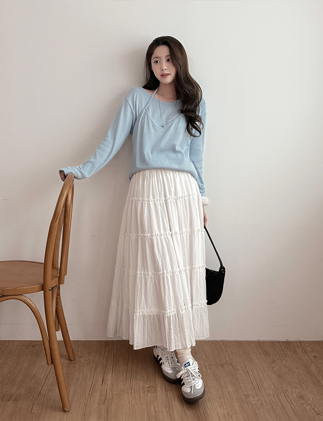 • 라슈카 层褶裙 松紧带 长款 裙子 86563