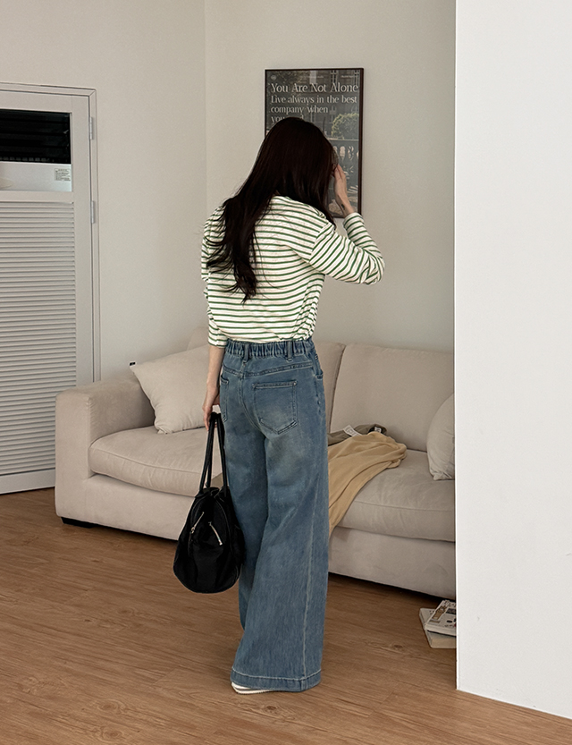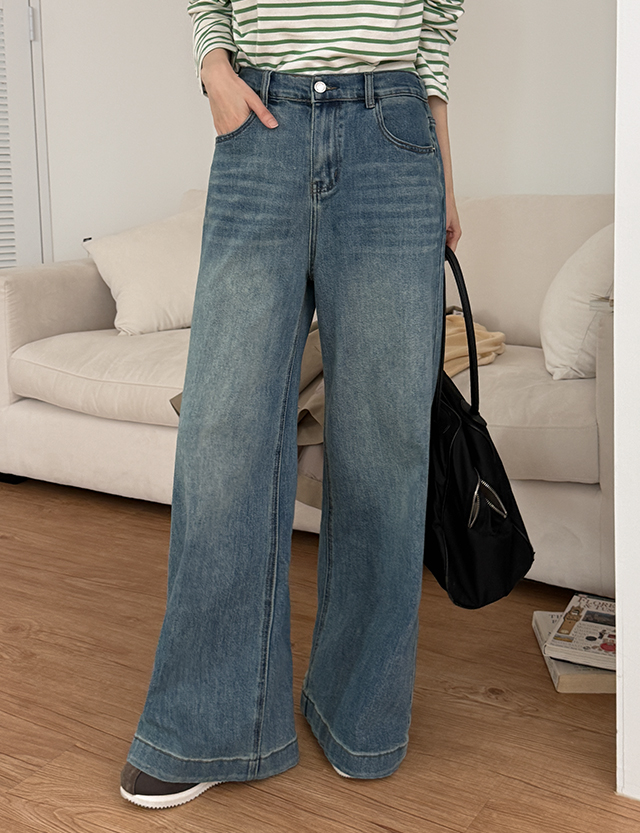 - 밑단이 살짝 퍼지는 와이드 부츠컷 라인으로