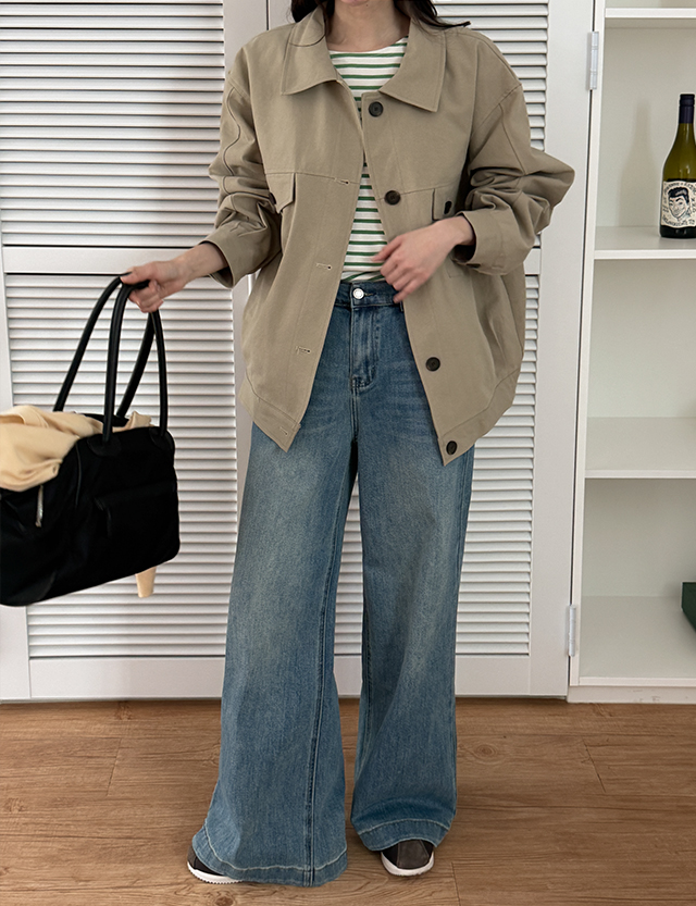 • 인생핏 뒷밴딩 宽 靴型裤 牛仔色 短裤 86781