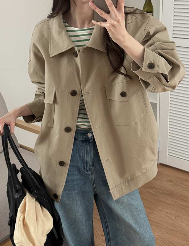 프렌디 宽松 标签 关键点 棉布 夹克 86779