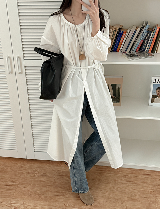 파넬리 宽松 셔링 长款 连衣裙 86484