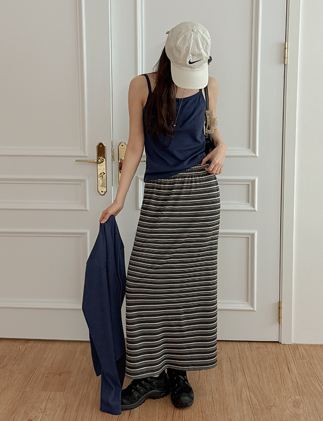 리네아 多色 条纹 松紧带 长款 裙子 86634