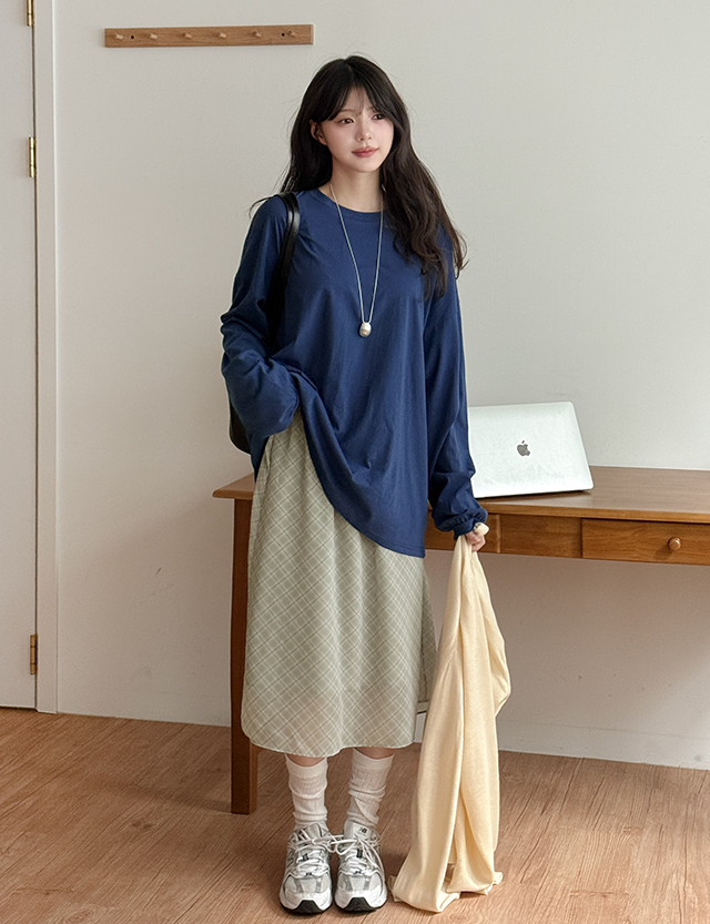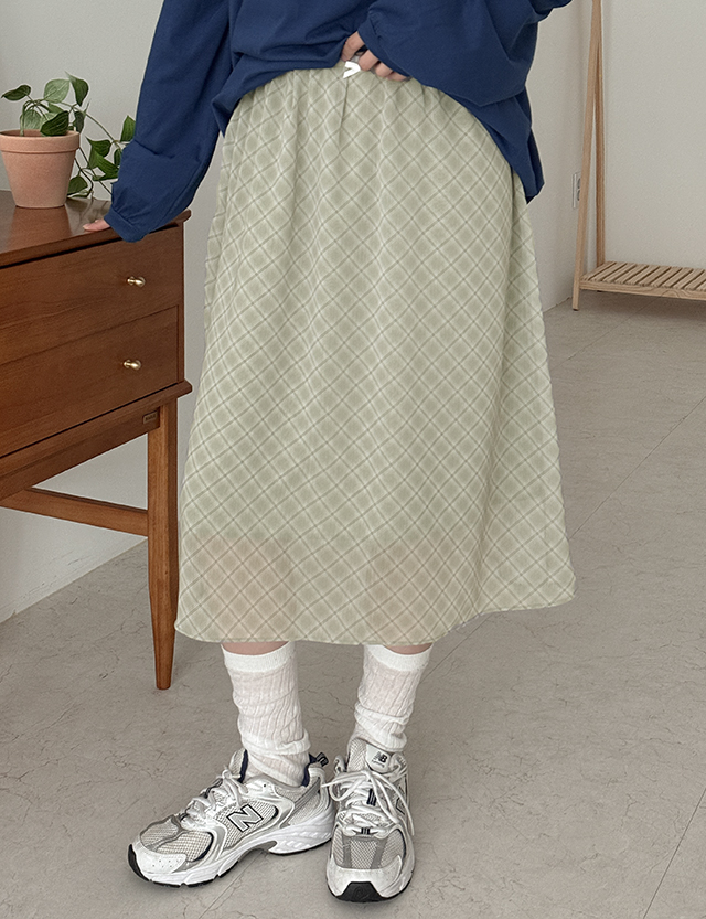리핸 松紧带 格子 미디 裙子 86765