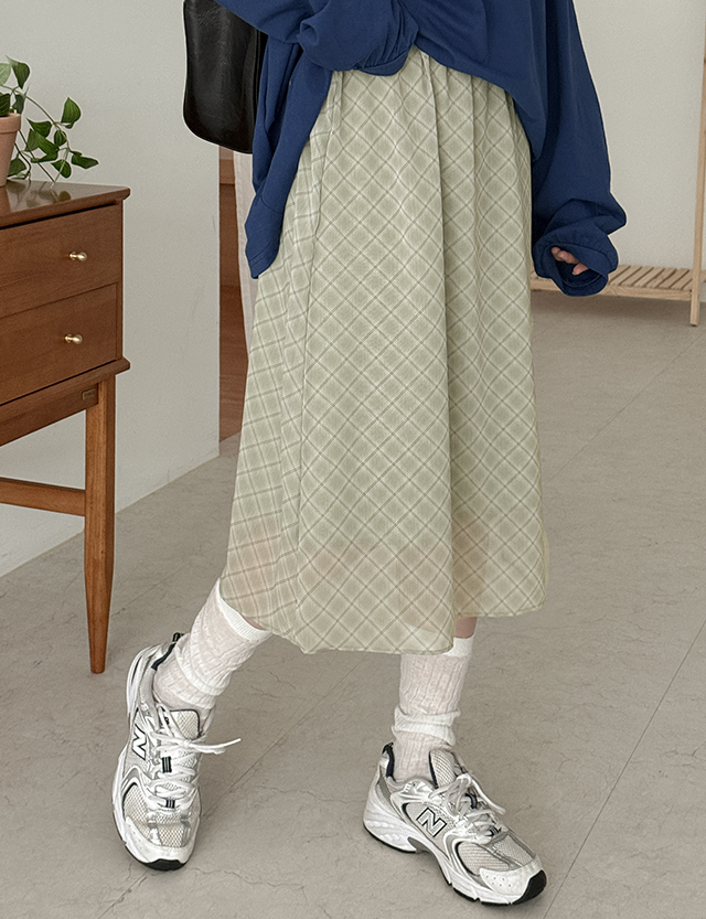 Banding Check Midi Skirt