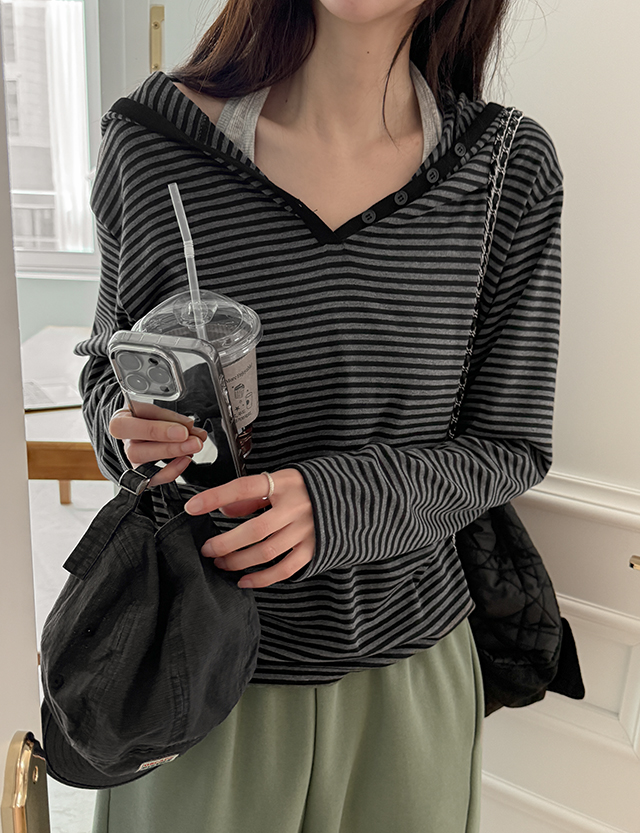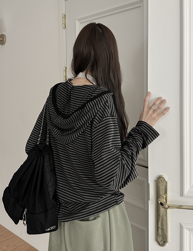 모리 条纹 반오픈 卫衣 T恤衫 86794