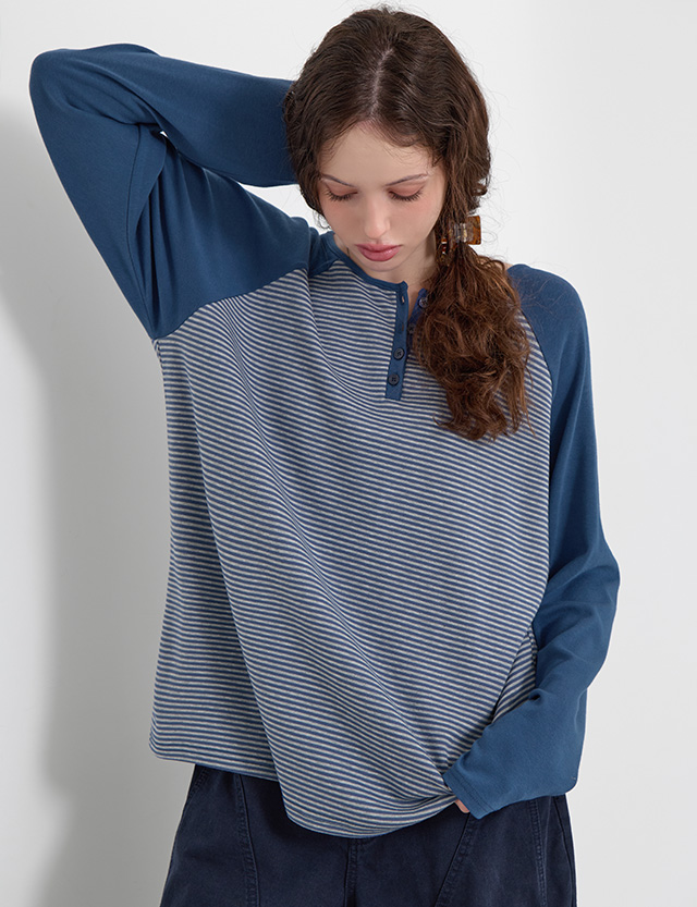 어도러블리 반오픈 条纹 插肩 宽松 T恤衫 86759