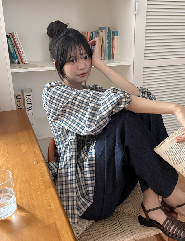 • 걸스 格子 波浪群/喇叭裙 双重 女衬衫 86907