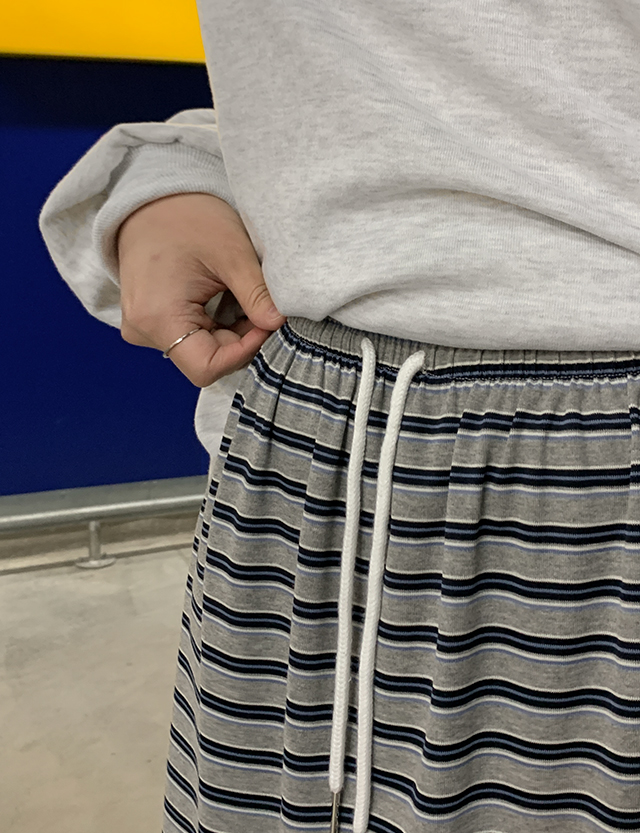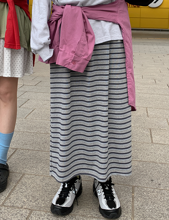 휘뚤마뚤 条纹 松紧带 长款 裙子 86927
