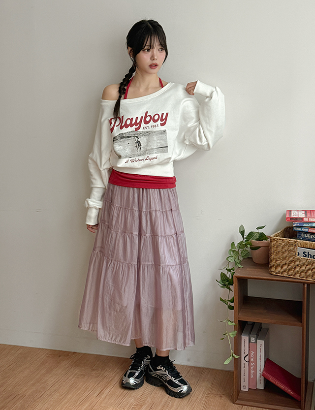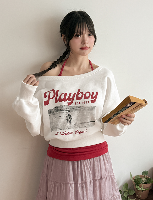 플레이드 露肩 短 套头卫衣 86896