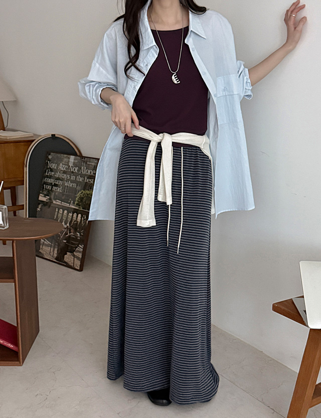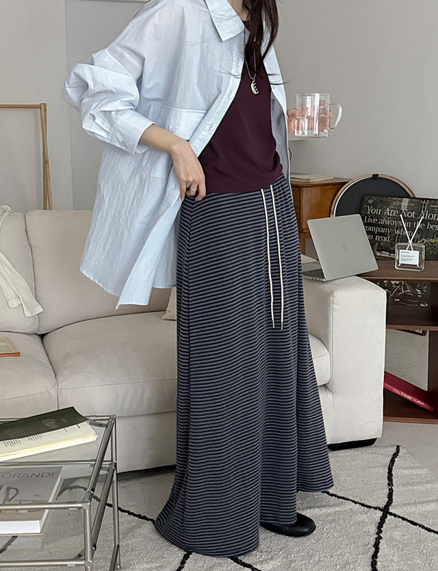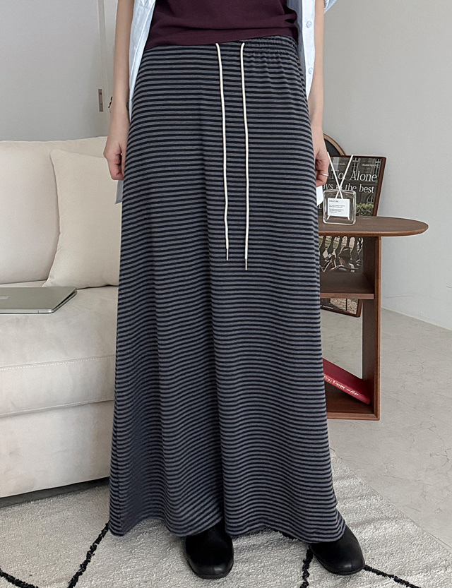 비렌트 松紧带 配色 条纹 맥시 长款 裙子 86882