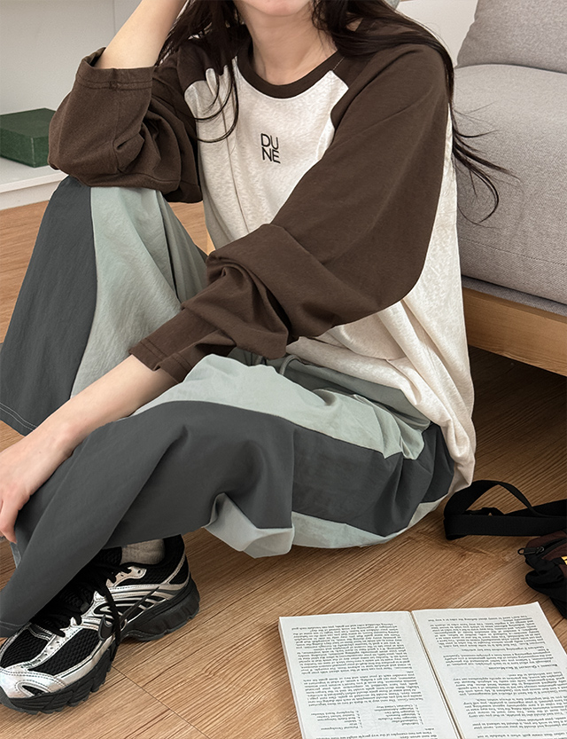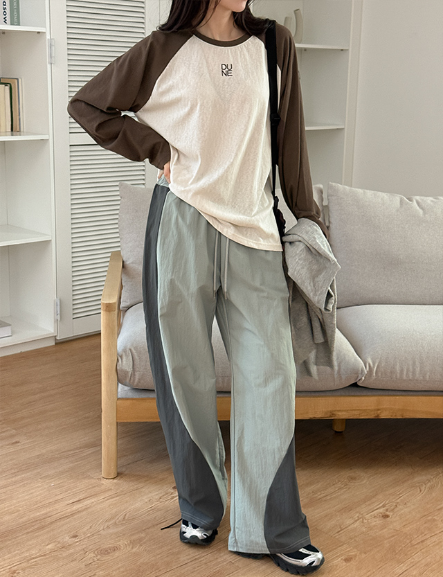 - 넉넉한 와이드핏에사이드 배색 디테일로