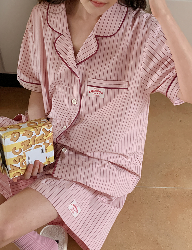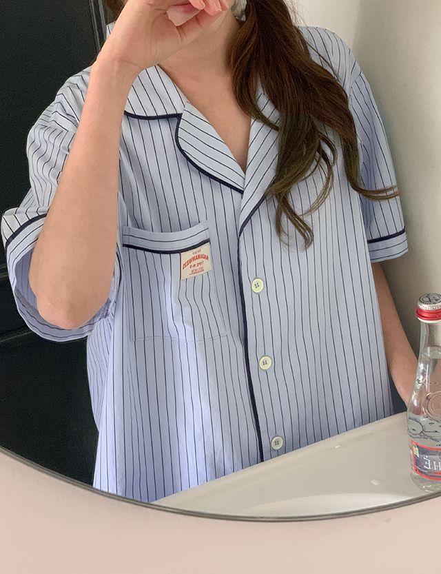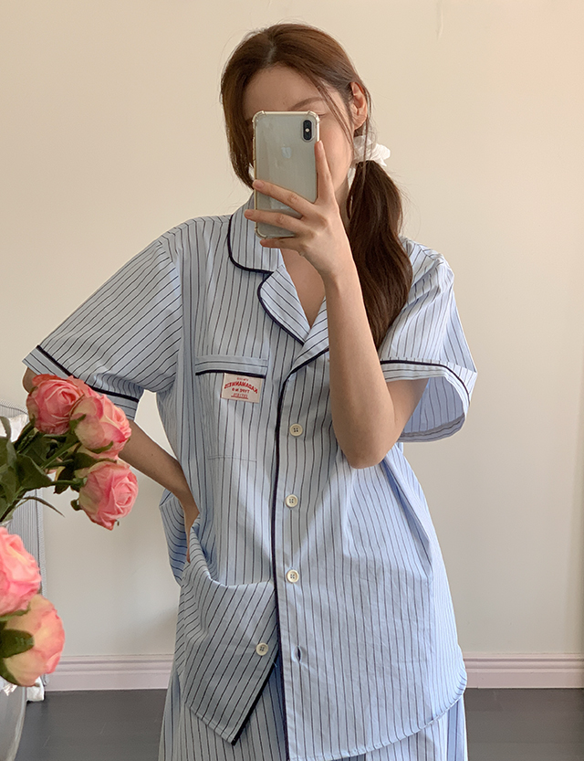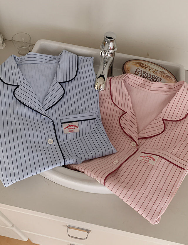 - 클래식한 셔츠형 디자인의 파자마 세트