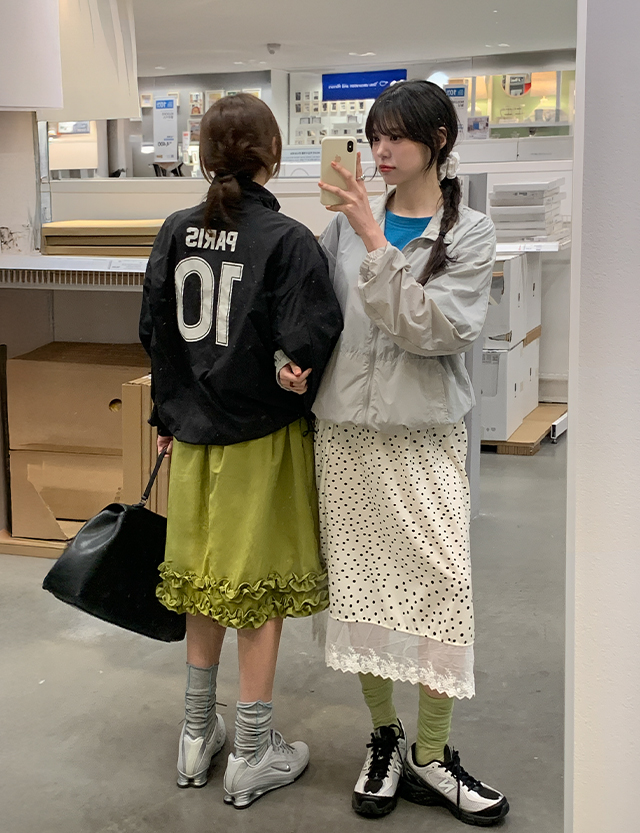 - 밑단 스트링 디테일으로 다양한 아웃핏 연출 가능