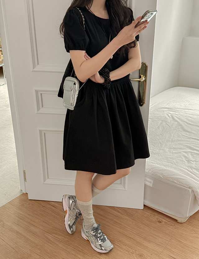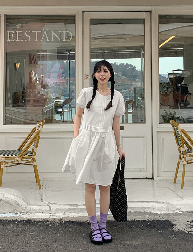 소매와 허리에 셔링 포인트로 귀여우면서도