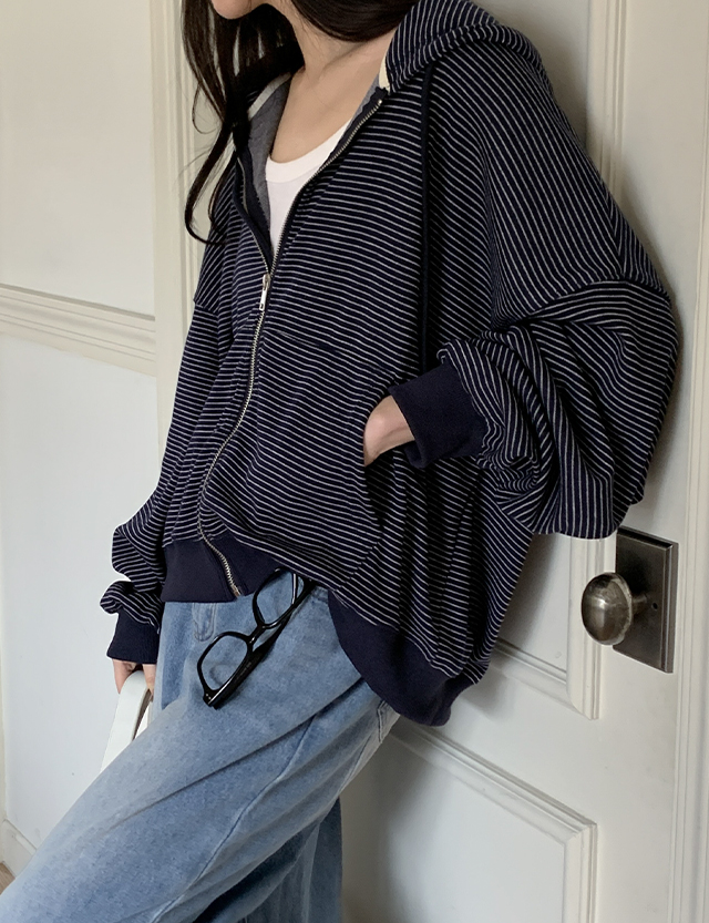 파트링 宽松 條紋 卫衣 拉链卫衣 87070