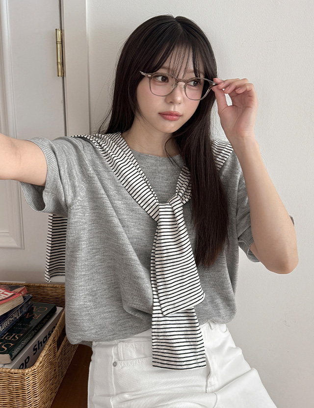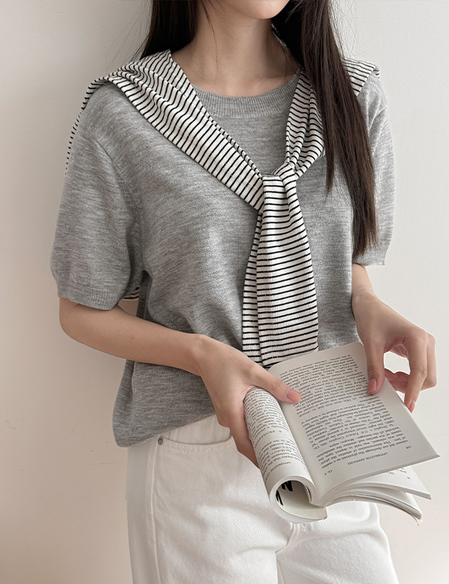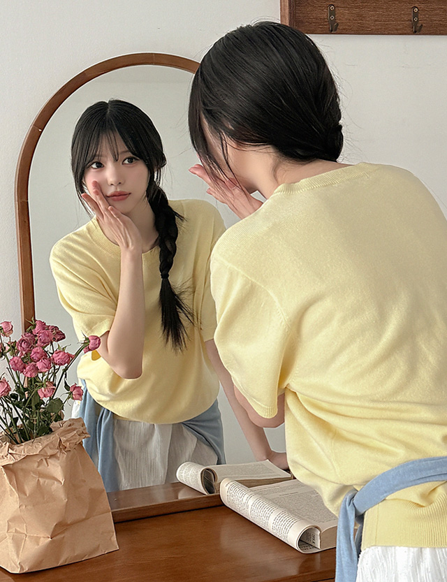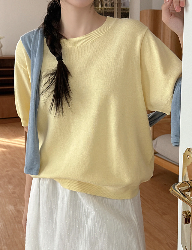 델리앙 宽松 半袖 圆领 针织衫 86899