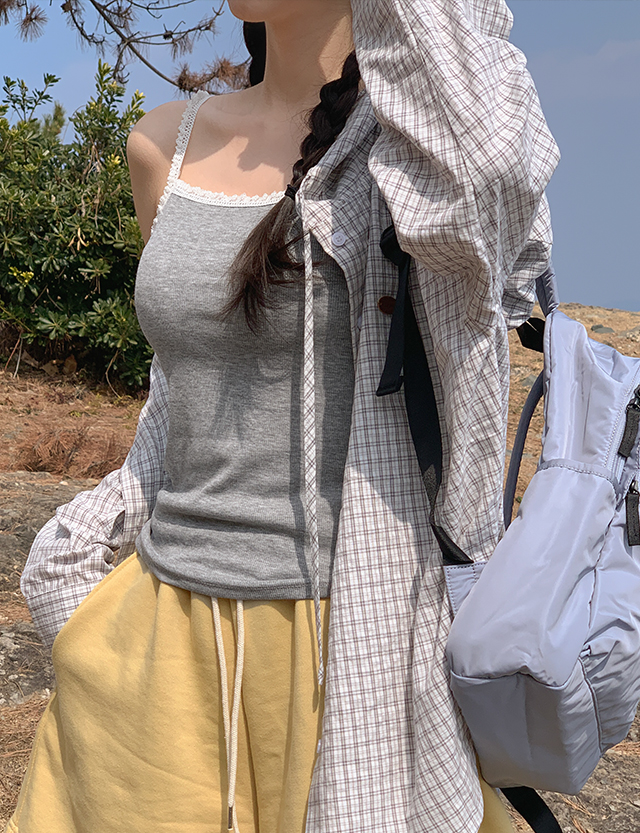 러블민 蕾丝 弹力 竖纹 背心 87033