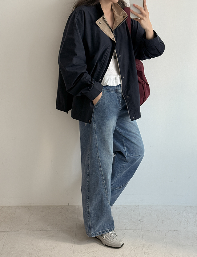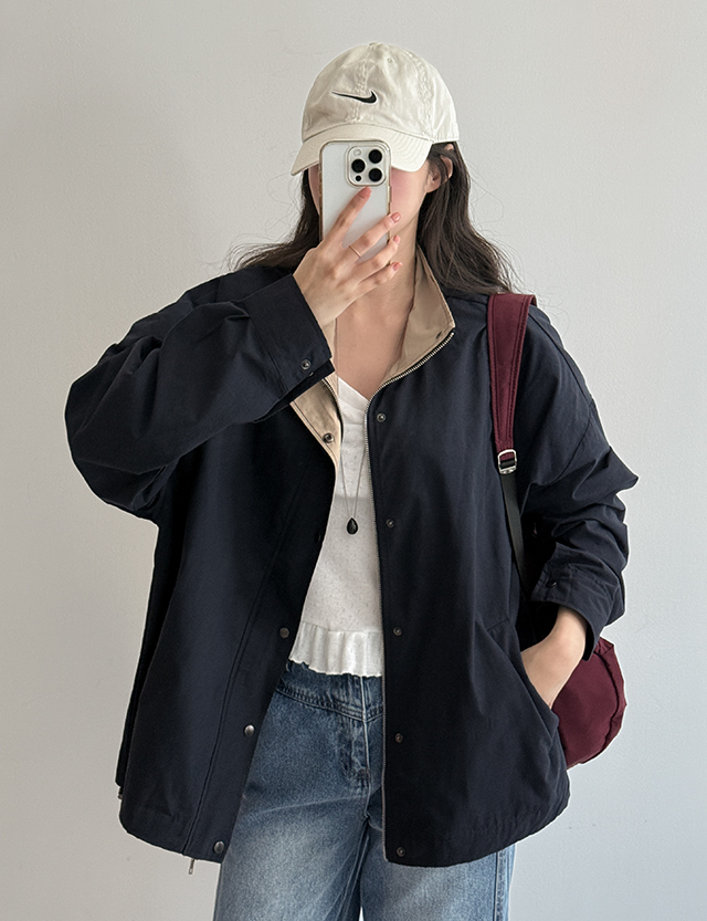 다빈 颜色 配色 밑단 串 宽松 夹克 87114