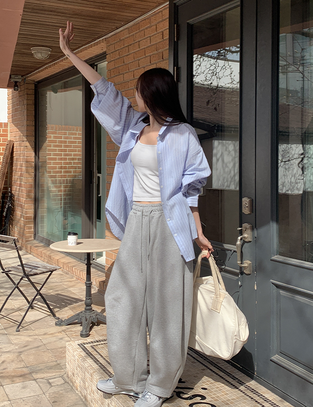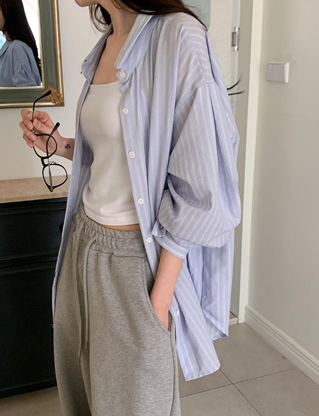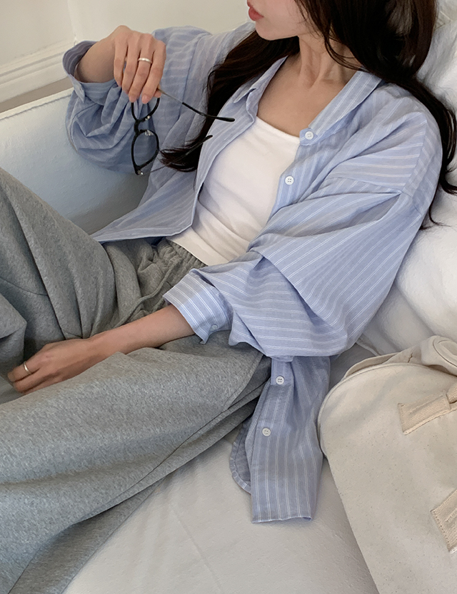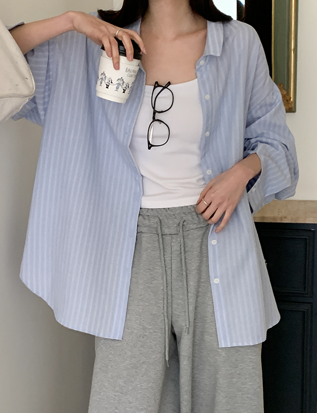 - 여유있는 루즈핏으로 내추럴한 무드가 느껴지는 스트라이프 셔츠