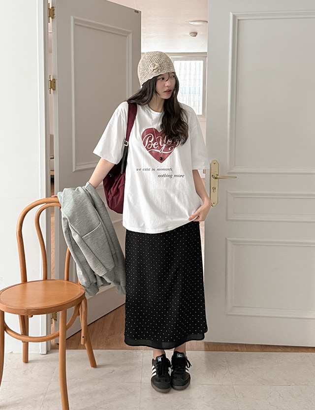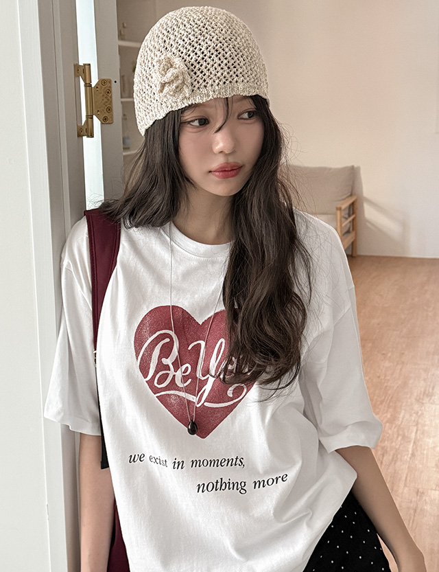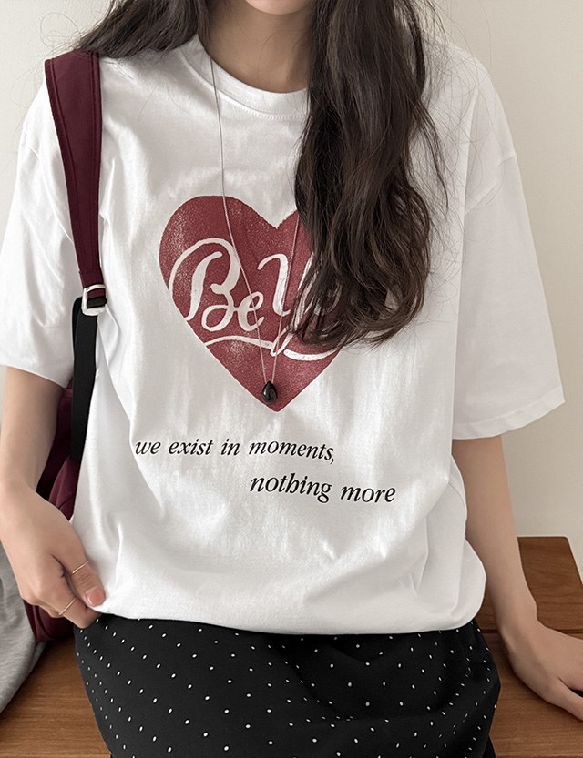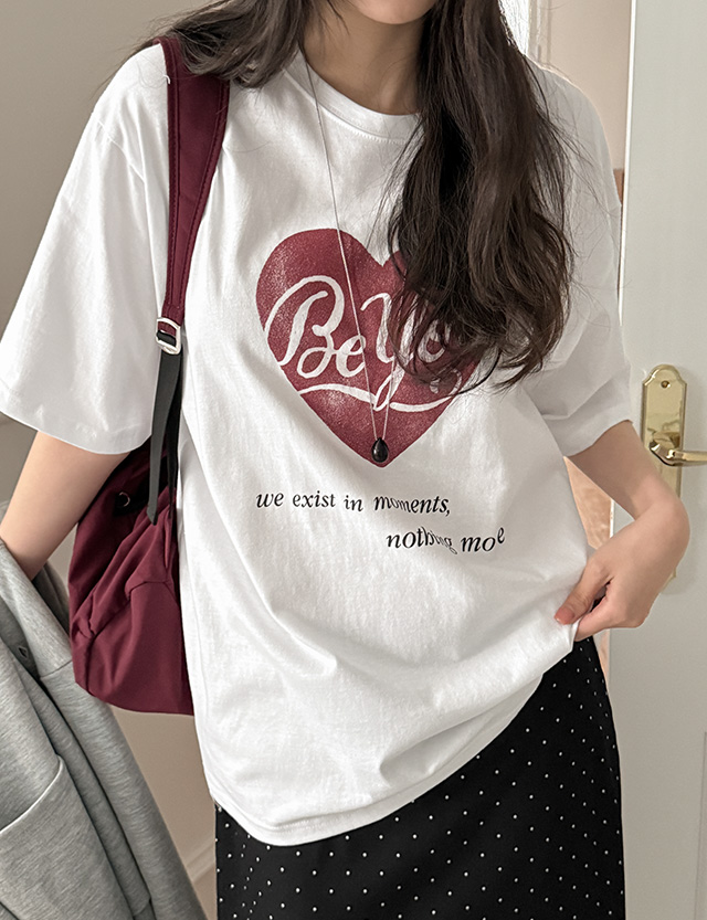 러브빈 印刷 宽松 半袖 T恤衫 87121
