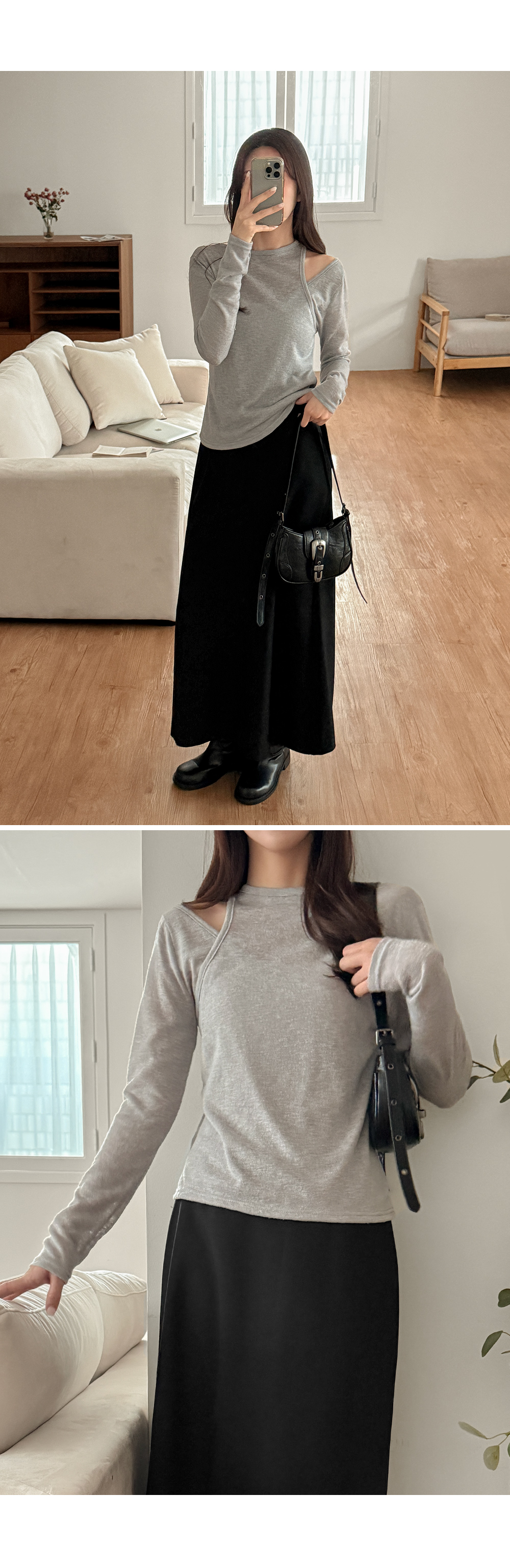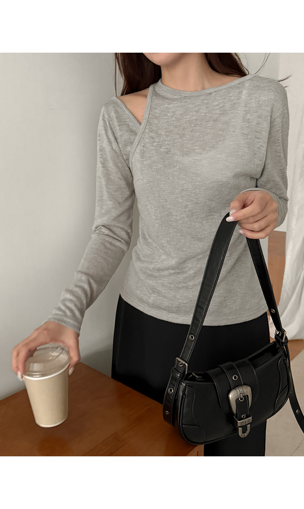 - 트렌디한 무드가 돋보이는 숄더 오프 티셔츠