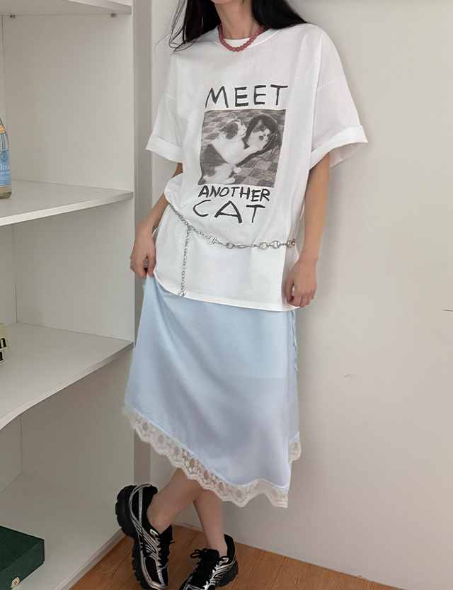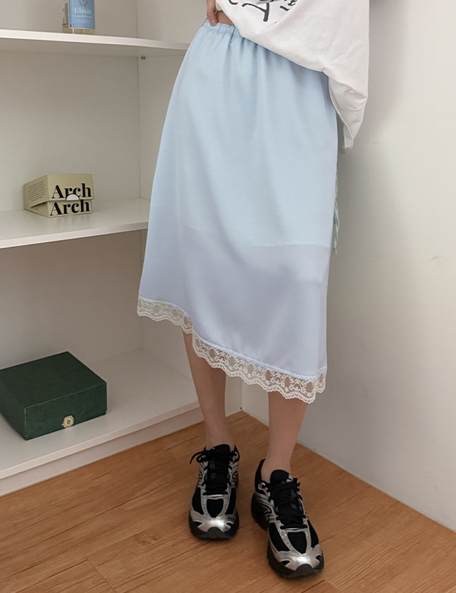 바벨티 绸缎 蕾丝 미디 松紧带 裙子 87062