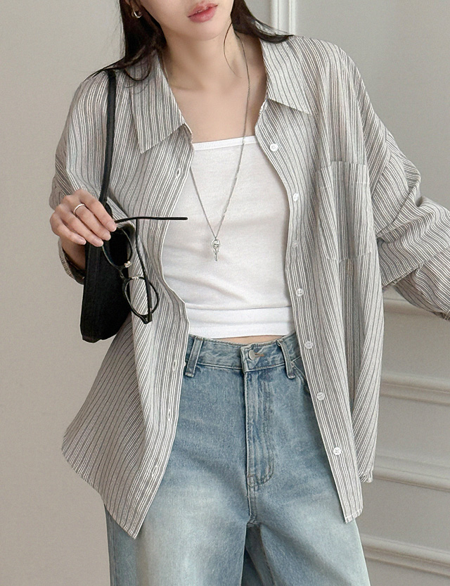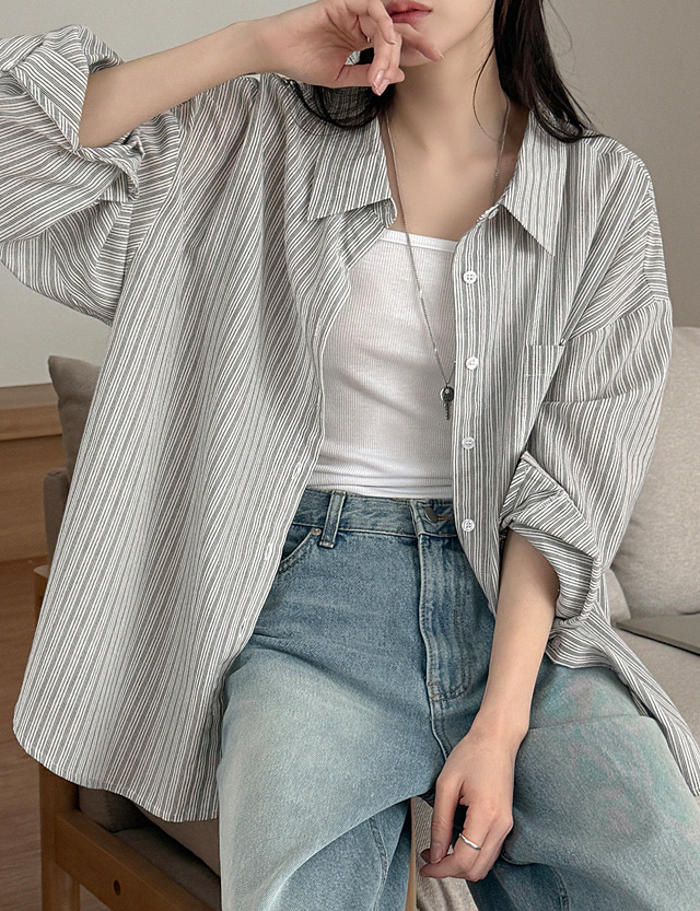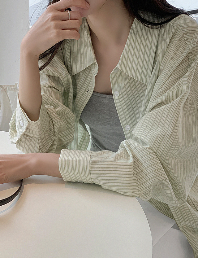 밀키파우더 条纹 宽松 衬衫 87148