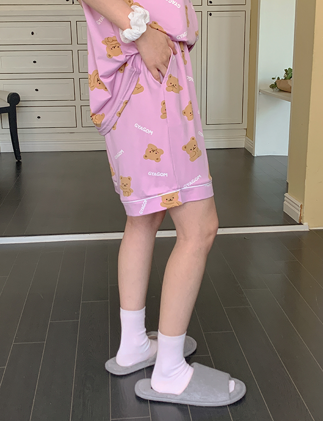 래벗 시원 곰돌 衬衫 短裤 . 设置 86951