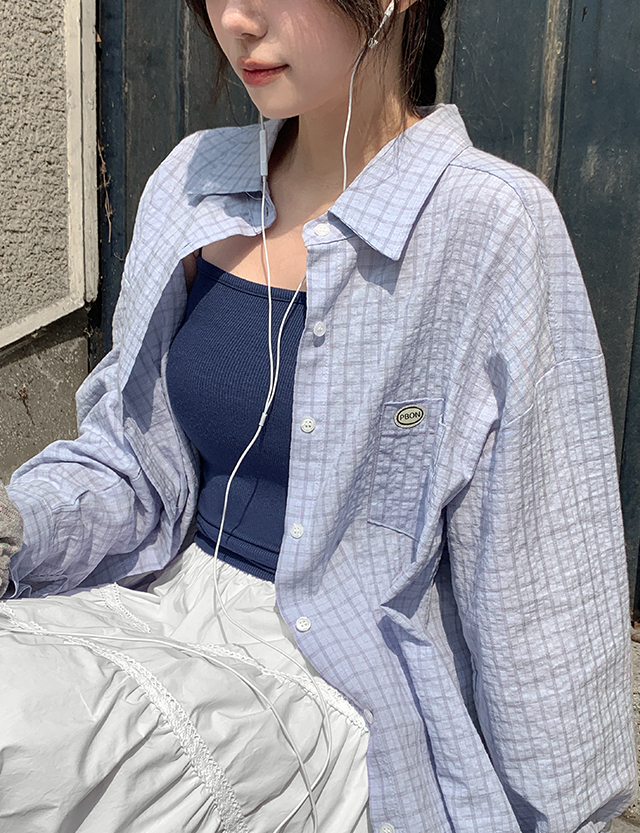 봄봄산뜻한 宽松 格子 衬衫 87127