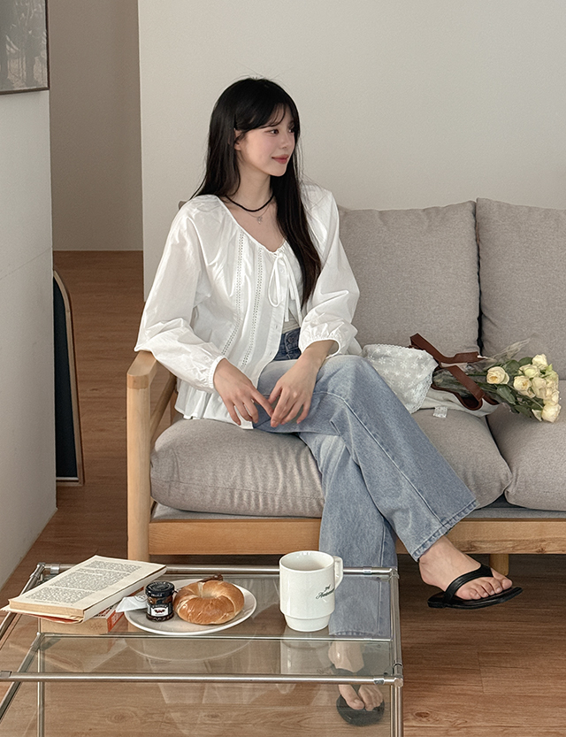 • 일레틴 印花 蕾丝 셔링 女衬衫 87211
