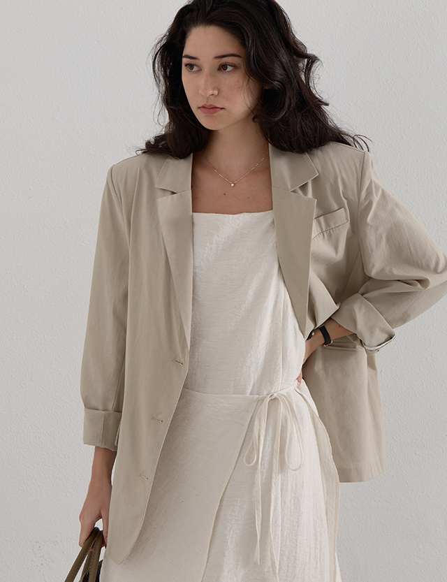 레이온,나일론,린넨 혼방 소재로 구김이 잘 가지 않으며, 가볍고 시원한 착용감