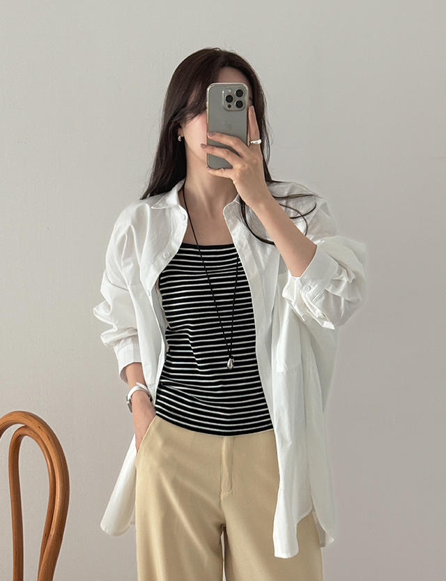 - 군더더기없이 깔끔한 기본 셔츠로 단품 착용은 물론