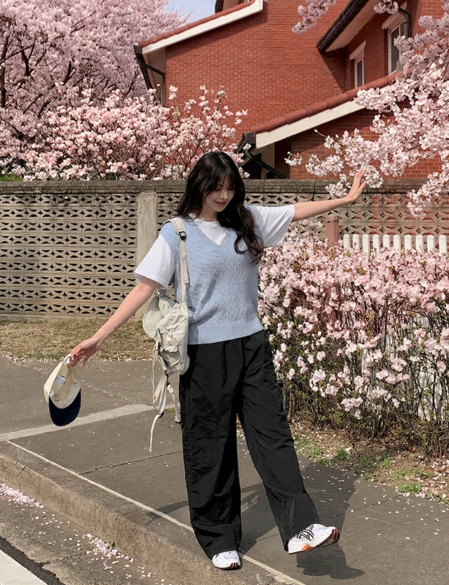 와이드 실루엣으로 트렌디한 무드 연출