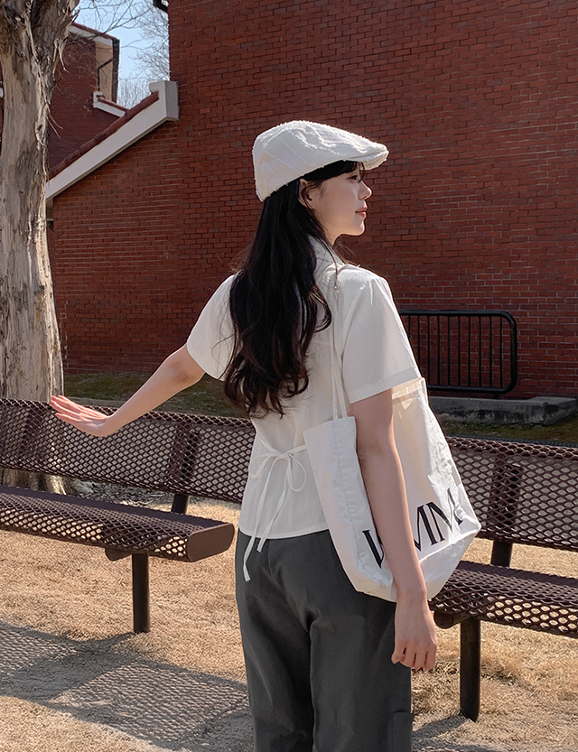 Strap Collar Short Sleeved Shirt
