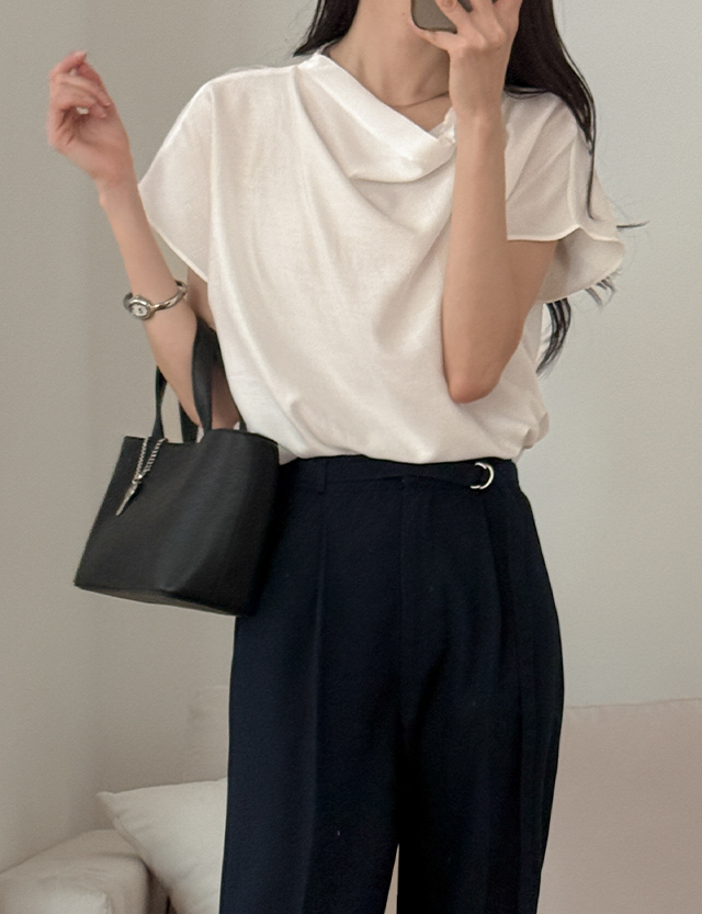 - 캡소매 디자인의 드레이프 블라우스