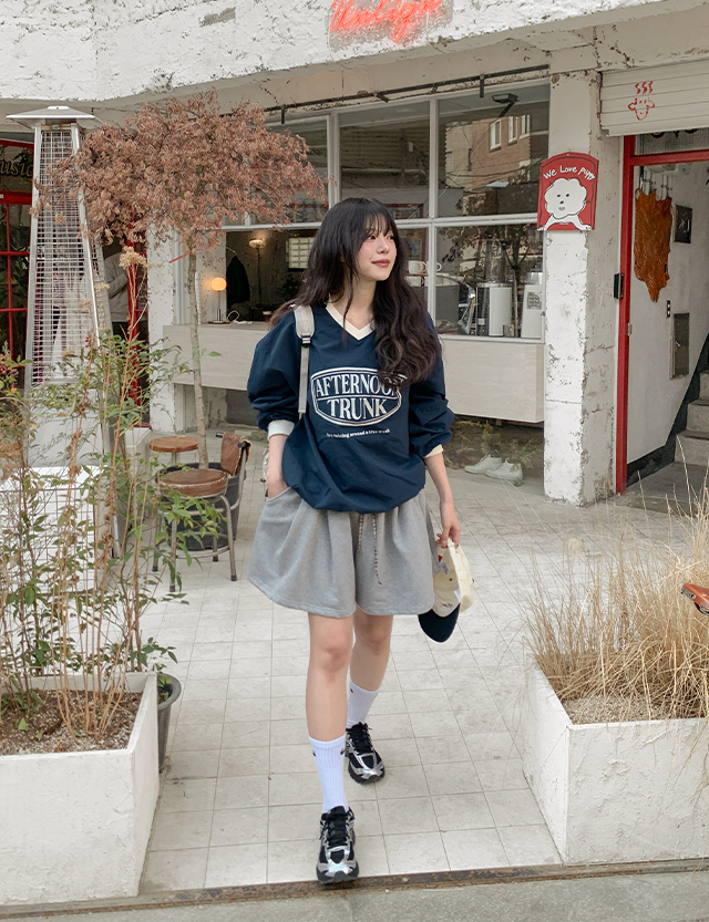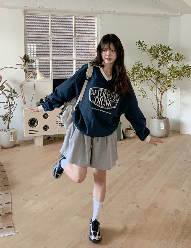 • 에어린 颜色 配色 나일론 V领 宽松 套头卫衣 87260