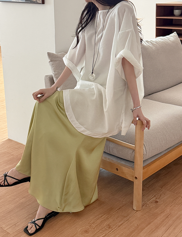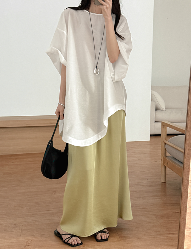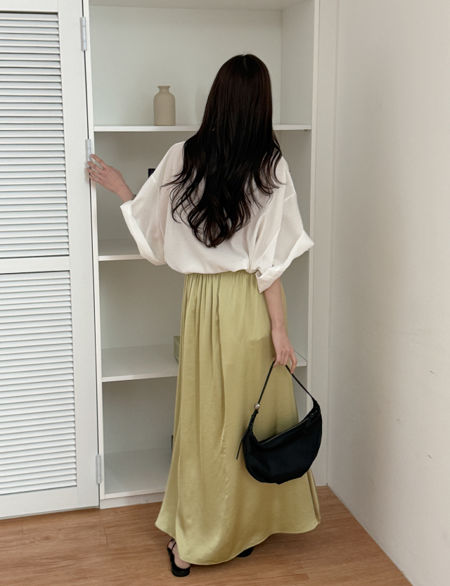 -전체밴딩으로 편안한 착용감의 새틴 스커트