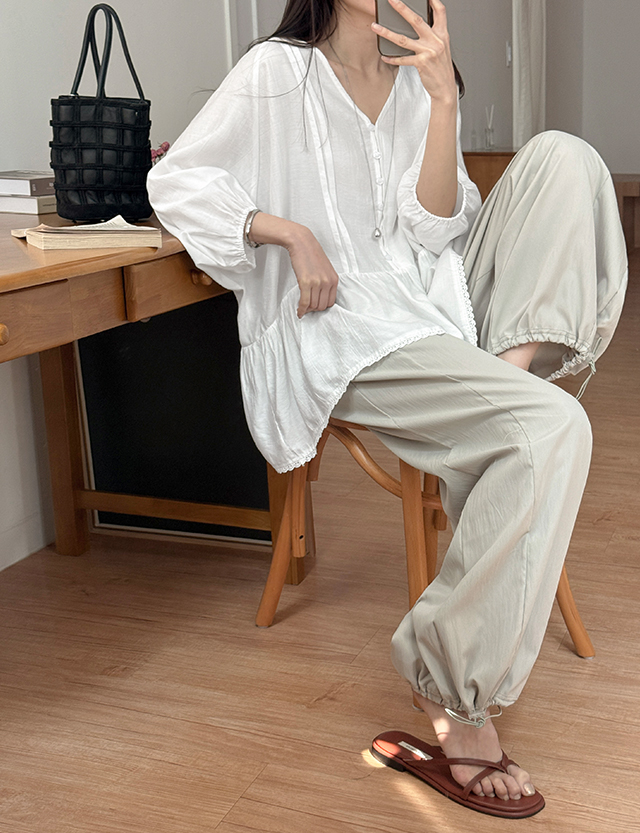 • 해인디 V领 插肩 宽松 女衬衫 86986