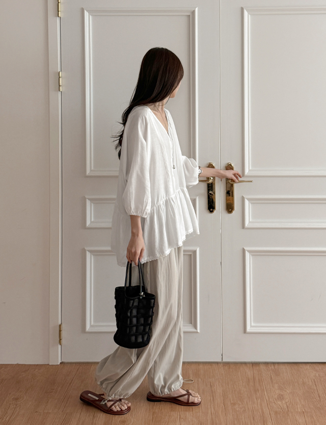 -얇고 바스락 거리는 소재로 한여름까지 착용 가능