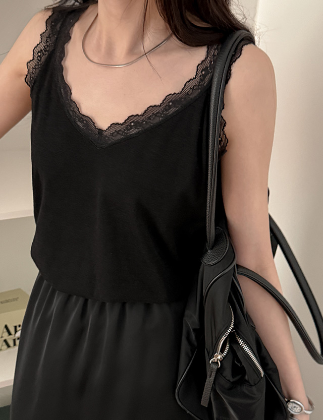 로맨틱하게 V领 亚麻 蕾丝 背心 87304