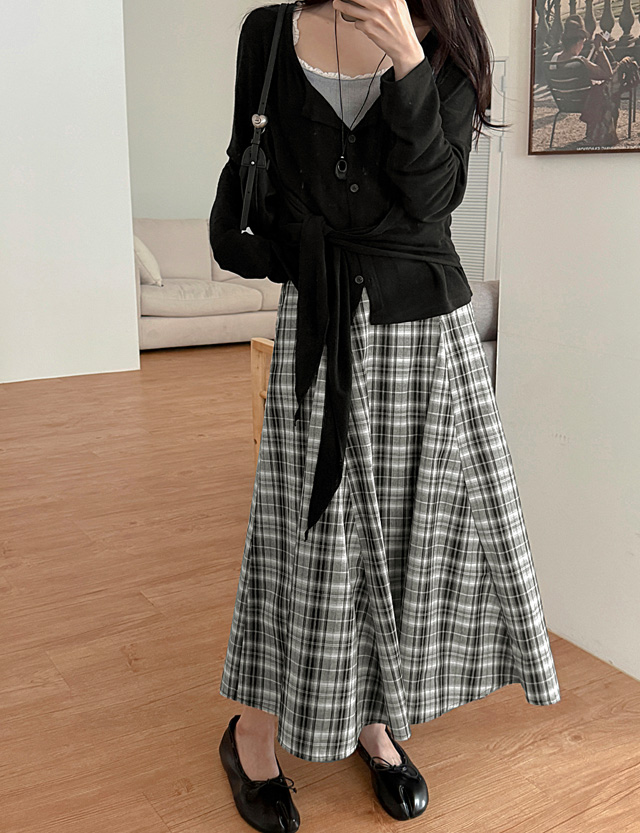 - 심플한 기본 가디건에 허리 스트랩 포인트로