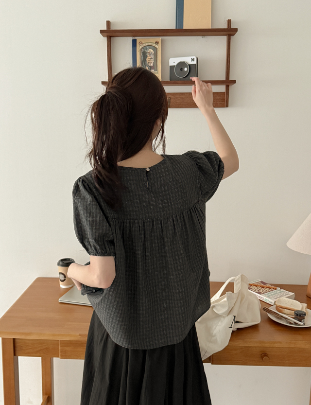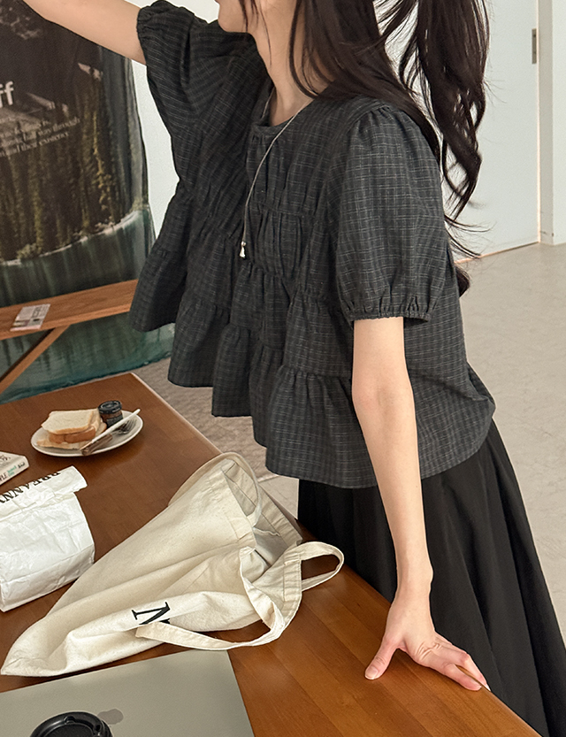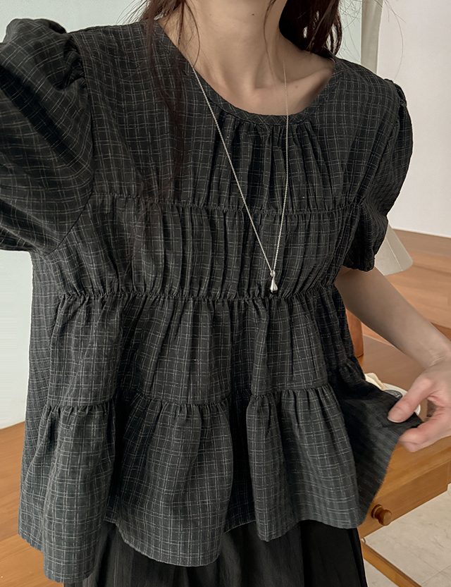 로우셀 格子 波浪群/喇叭裙 女衬衫 87372