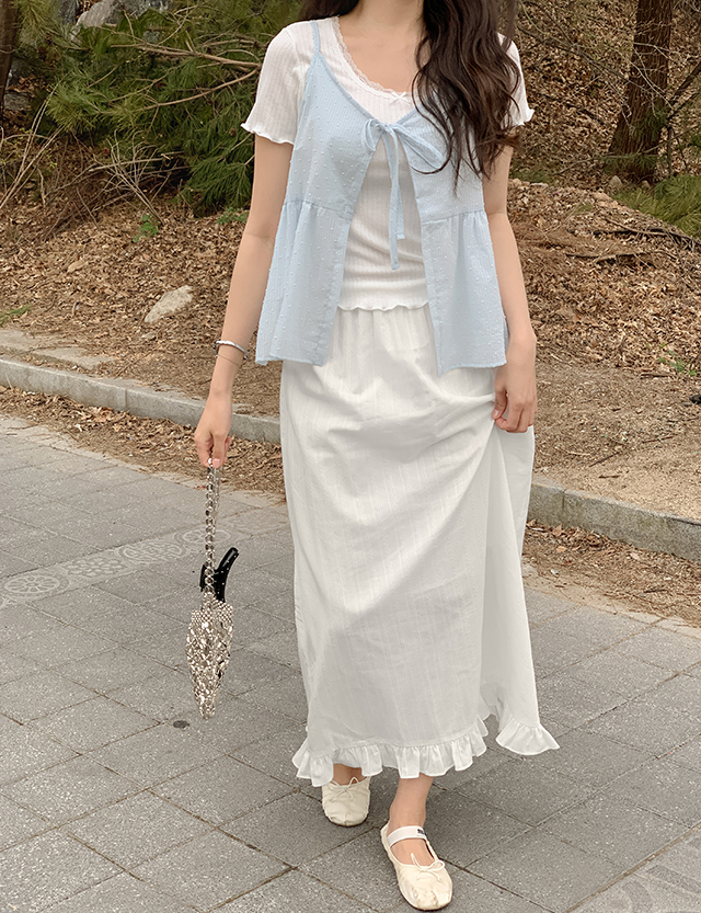 - 가슴 아래 라인부터 잔잔한 셔링이 잡혀 있어