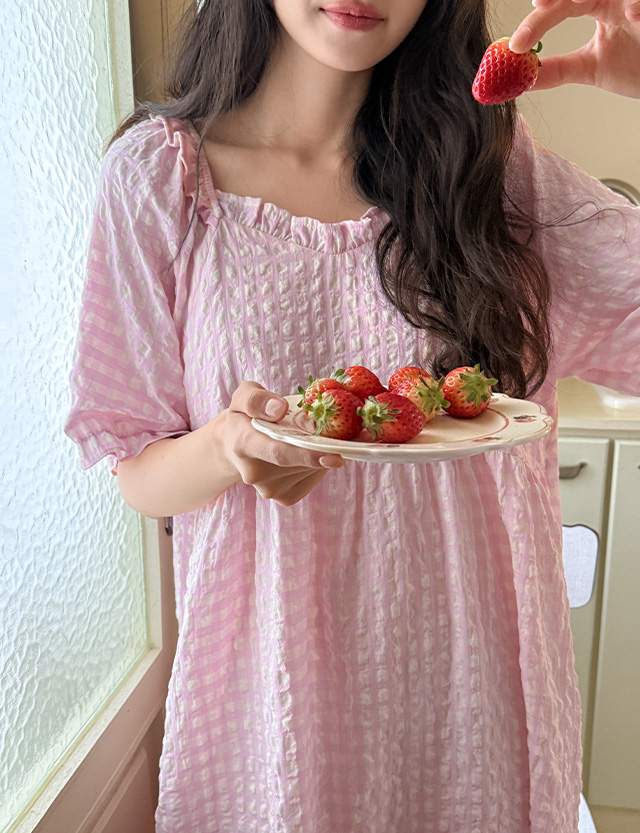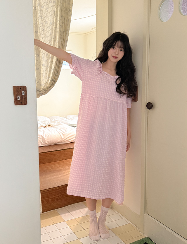 하루를 더 기분 좋게 만들어주는 파자마 원피스입니다.