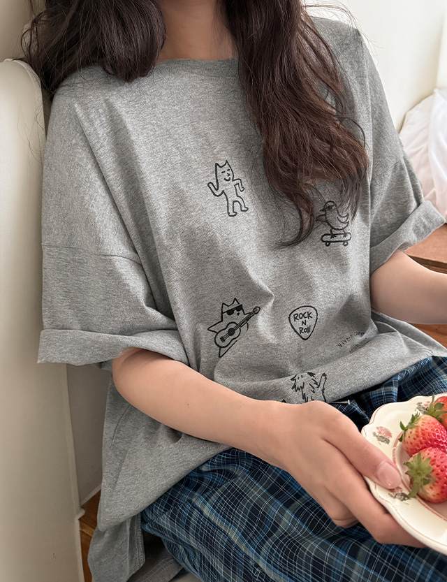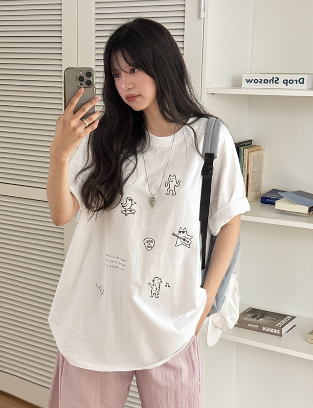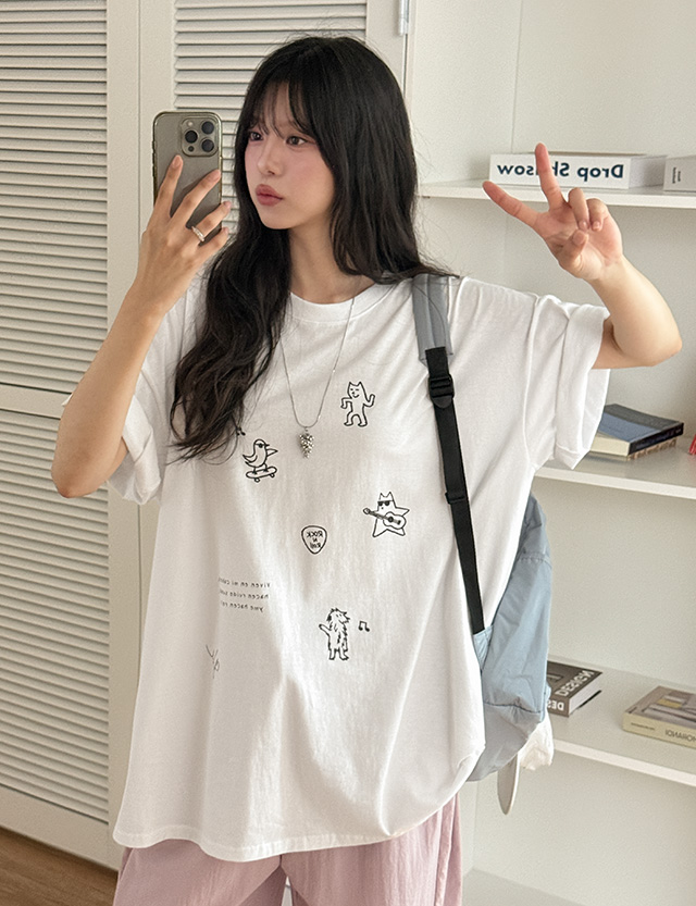 스크리블 리얼루즈핏 半袖 印刷 T恤衫 87382