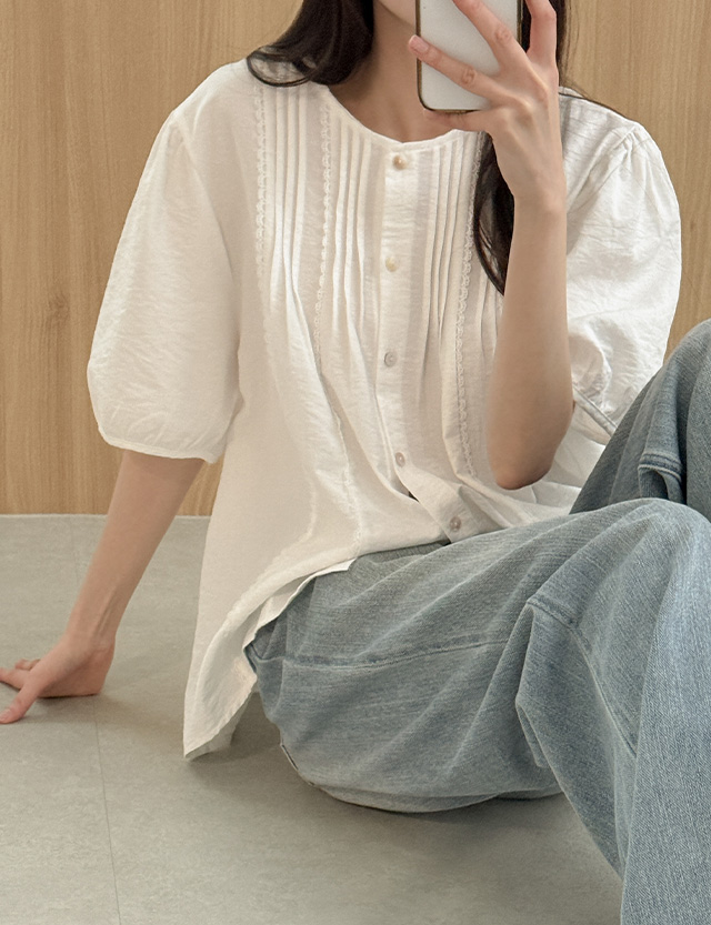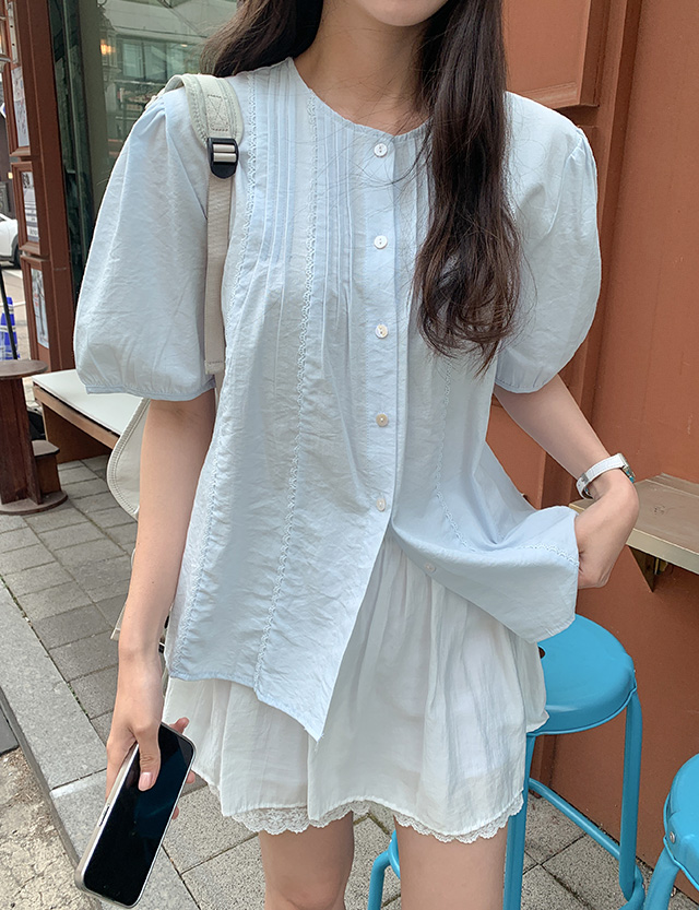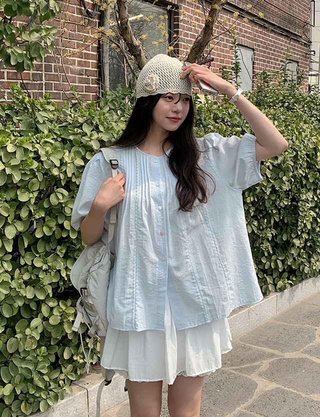 [09초이스] 러블리모드 핀턱 半袖 女衬衫 87357