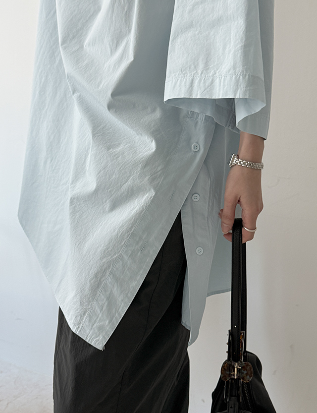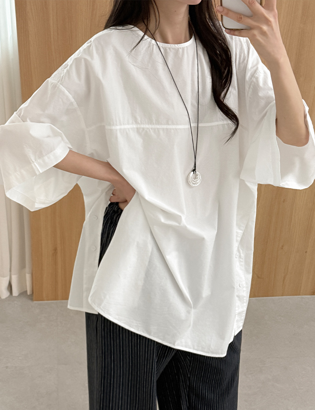 [09초이스] 은근한 关键点 버튼 슬릿 半袖 长款 女衬衫 87477