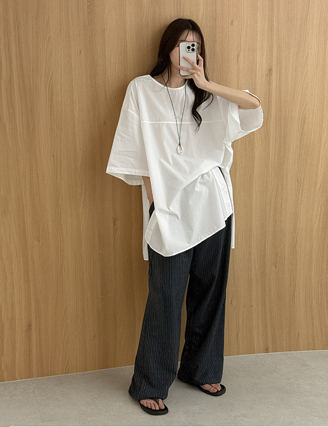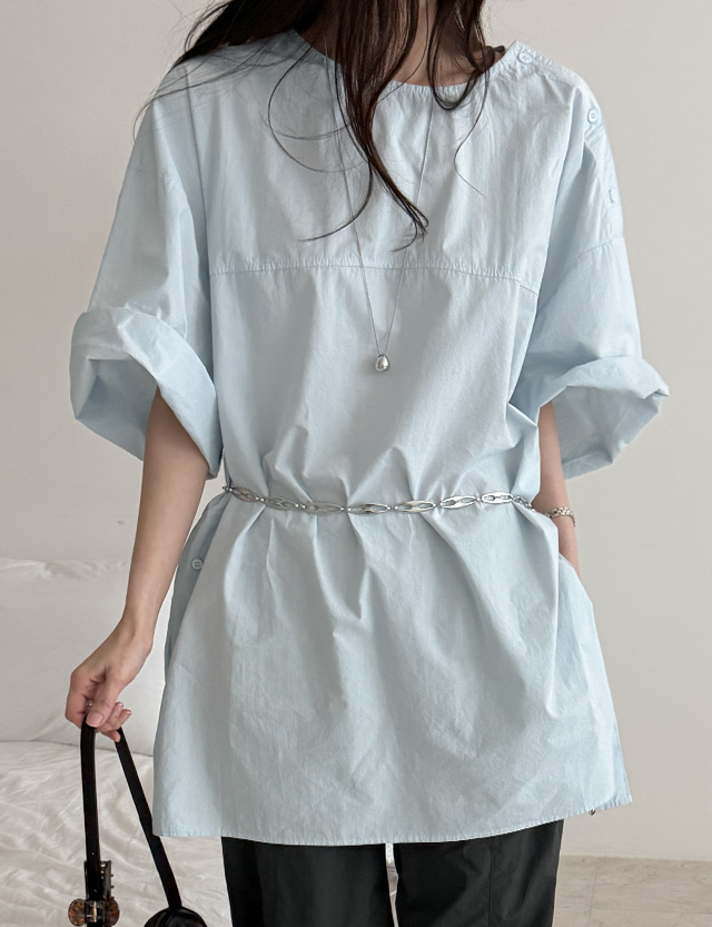 - 넉넉한 리얼 루즈핏의 반팔 롱 블라우스