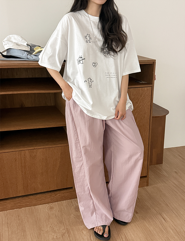 • 스크리블 리얼루즈핏 半袖 印刷 T恤衫 87382